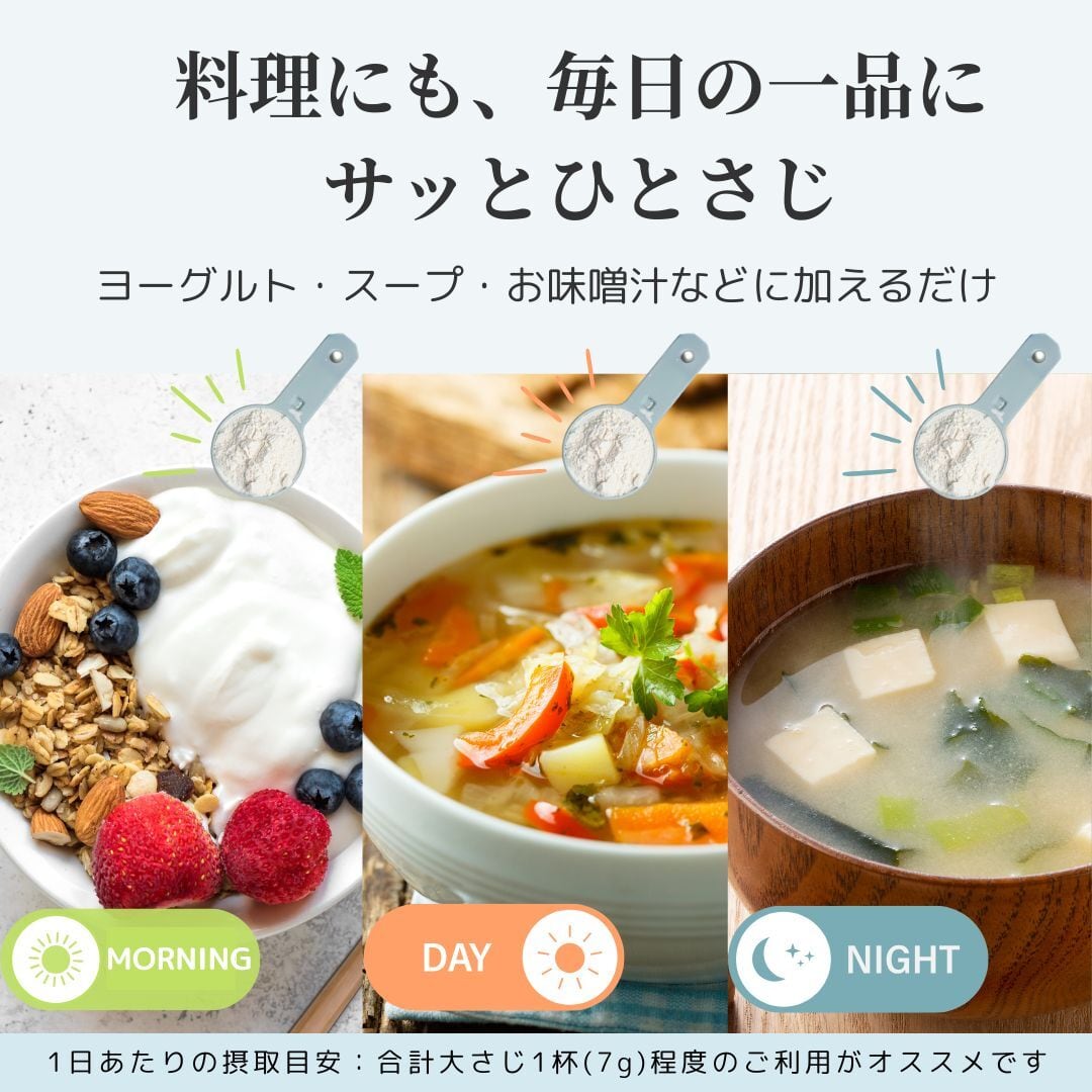 お味噌汁やスープに入れていただいたり、パン生地やお肉料理など幅広くお使いいただけますけ、お料理の “自然なうま味” を底上げしてくれますよ!